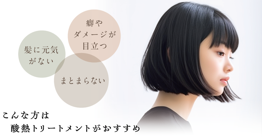 酸熱トリートメントは、髪のダメージを修復し、その後のダメージから髪を保護します。髪の毛の内部に浸透し、補修成分がダメージを受けた部分を修復します。
